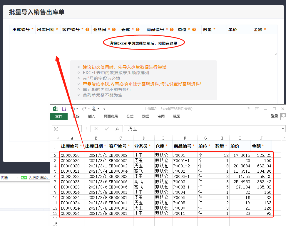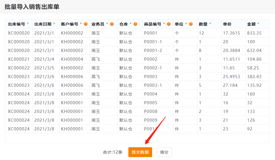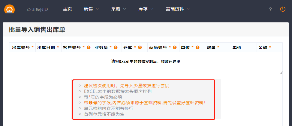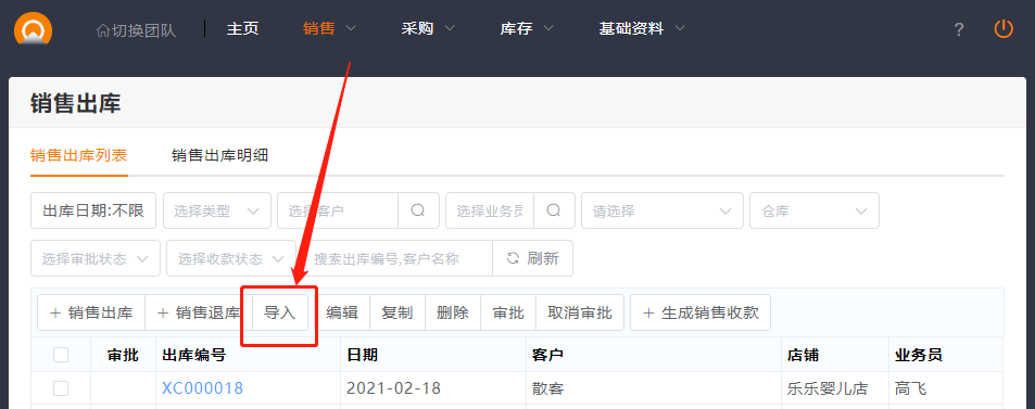 进销存中,不仅商品可以批量导入,销售出库单也可以批量导入。