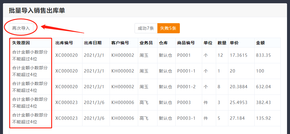 6.失败的数据,可再次导入,或者直接编辑保存。