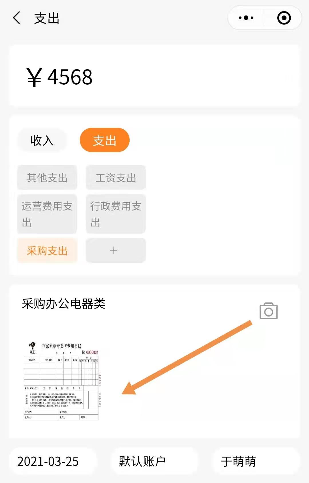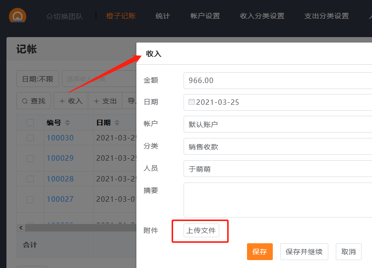 橙子记账中的收支,可以在新增页面,上传发票或凭证等相关单据。