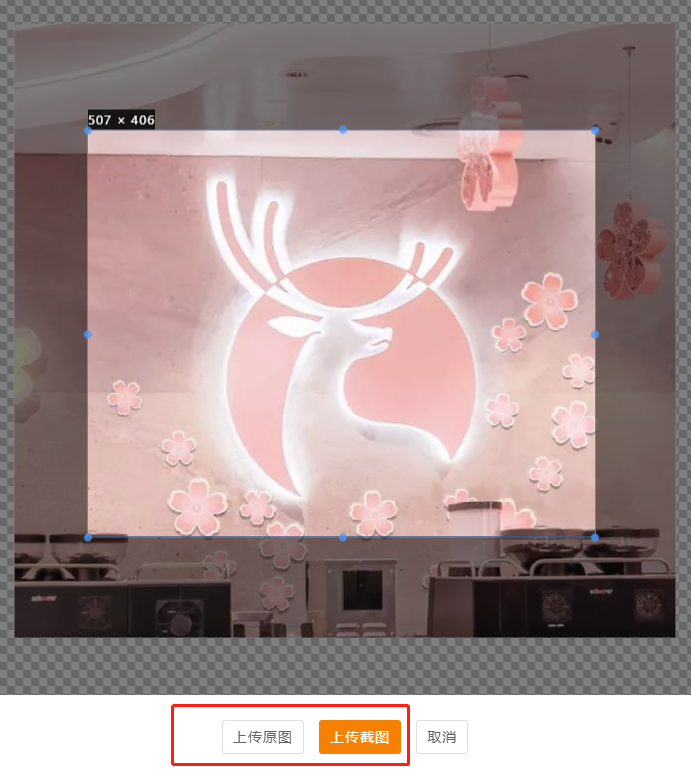 3.可以直击上传原图,或者截图上传(长宽比已固定)。