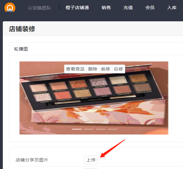 橙子店铺通,店铺装修里新增了一个设置分享店铺图片的功能,