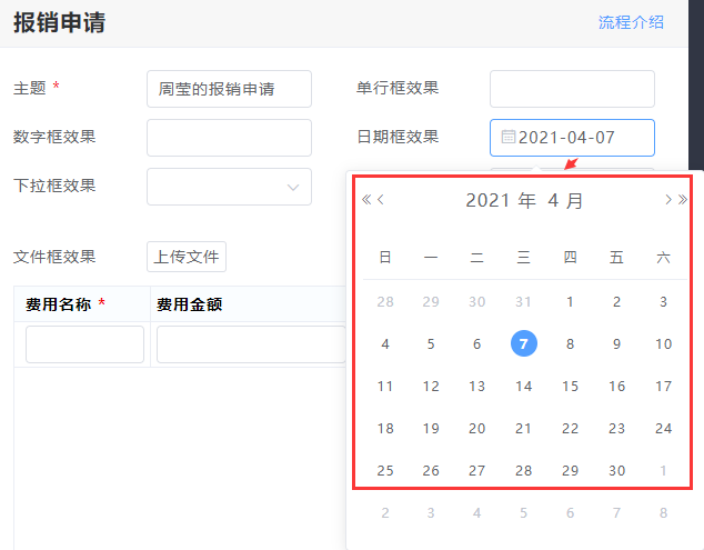 【文件框】:可用于上传附件,适用于需要提交单据或者图片等文件。