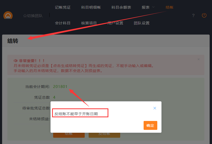 但是如果需要在记录开账期间之前的记账凭证,则需要修改开账期间及反结账至之前的日期,才可以做对应期间记帐凭证。