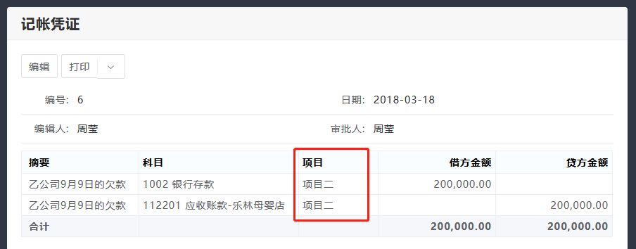 做对应记账凭证时,可以同时选择项目。