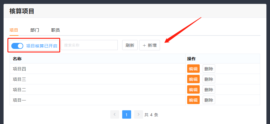 核算项目开启