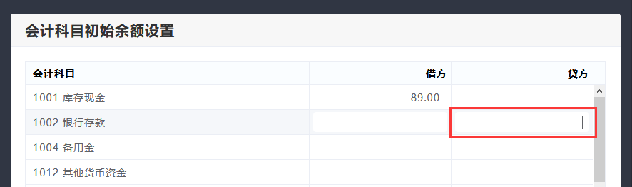 会计科目期初设置