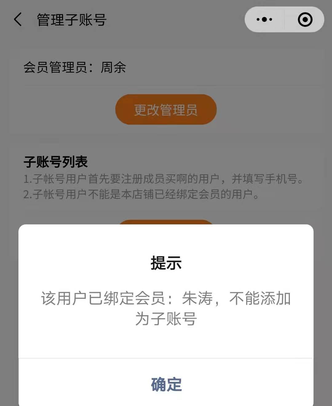 (若仍需绑定为子账号,可删除会员列表此会员,再尝试绑定为子账号)