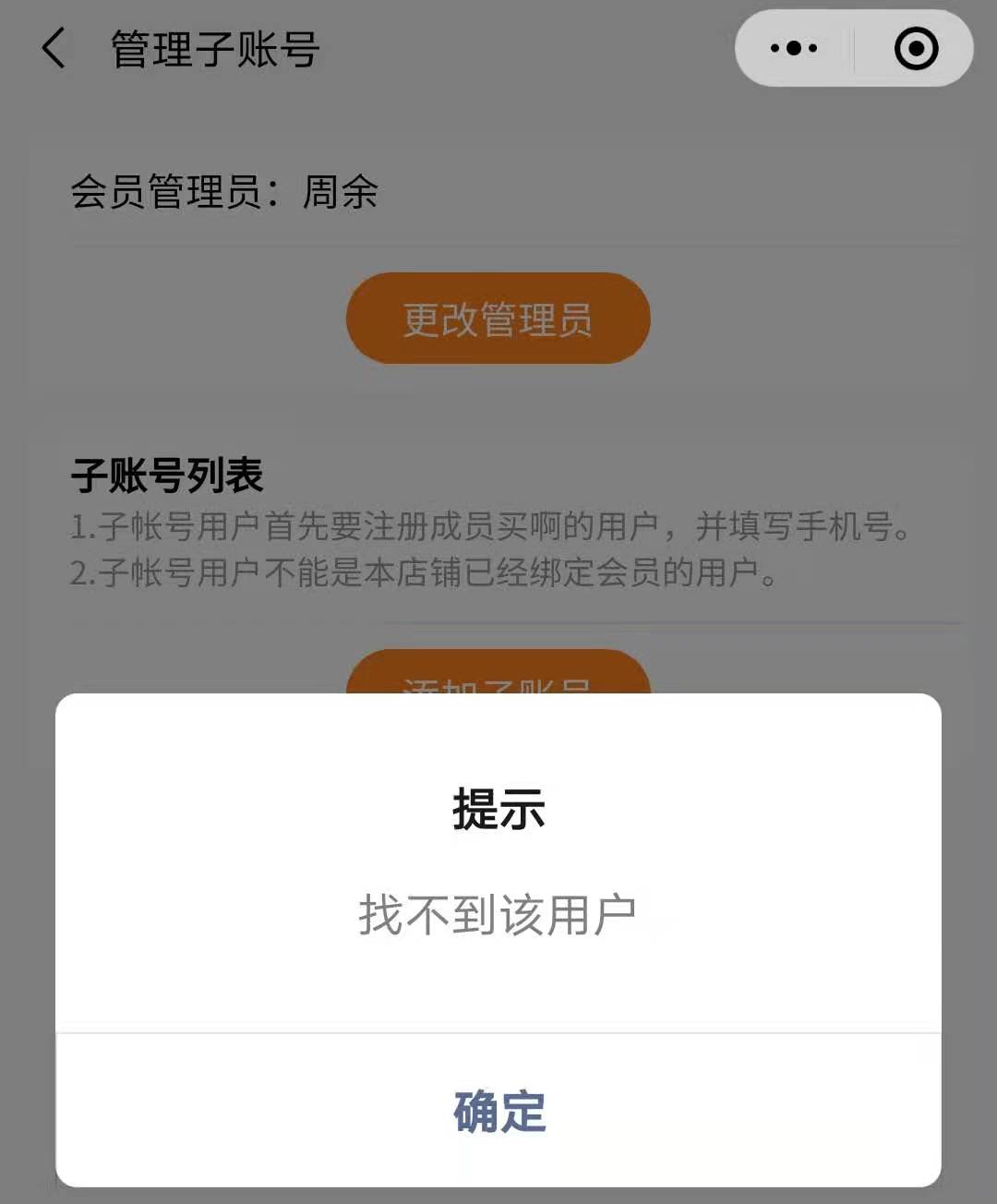 表示此用户,未注册买啊,不能读取成为子账号,可分享店铺给该用户,请点击注册会员。