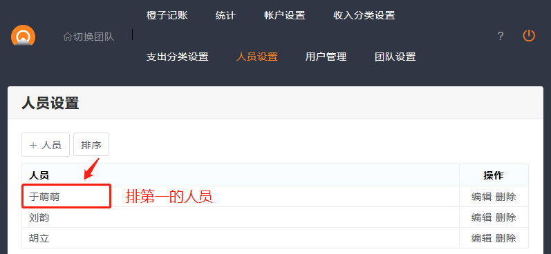 在人员设置排序,将常用人员排在第一。