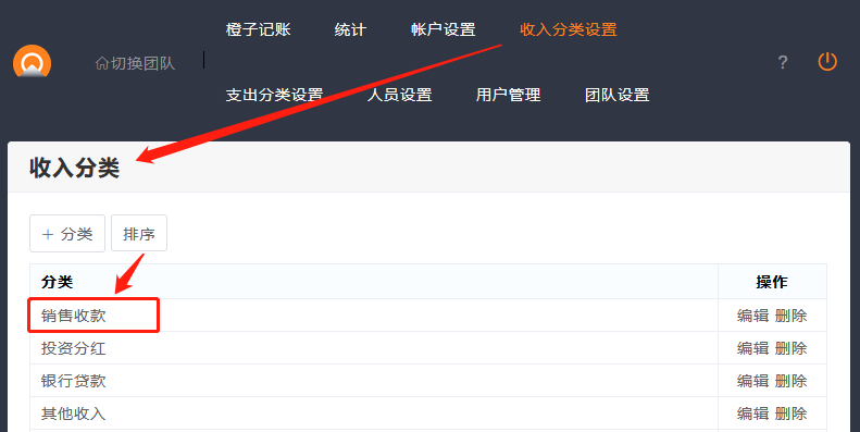 在收入分类(或支出分类)设置排序,将常用分类排在第一。