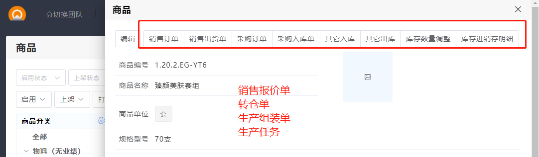 (除了商品详情里的常用单据,还有销售报价单,转仓单,生产组装单,生产任务单等)