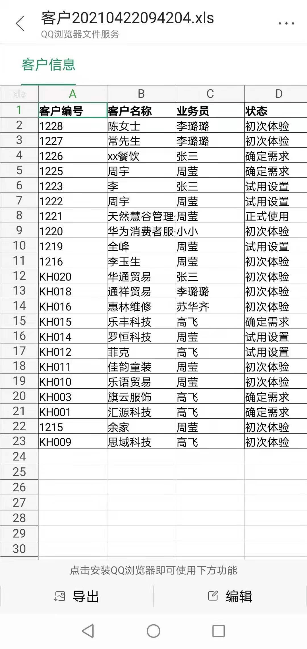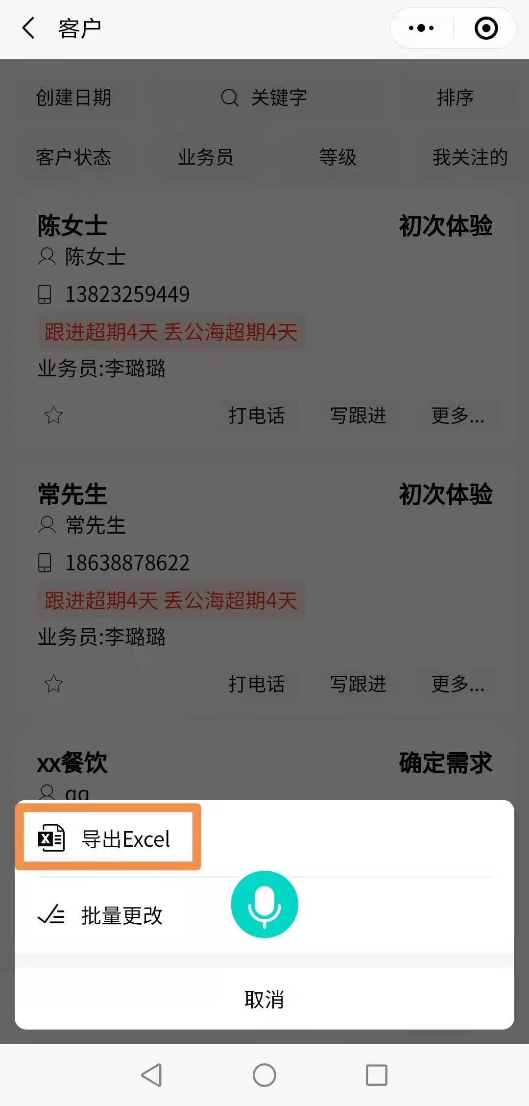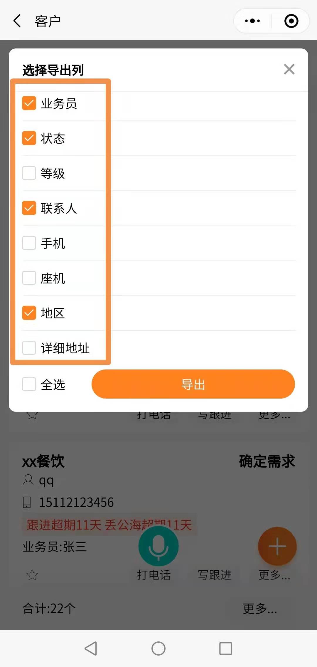 橙子客户管理除了在网页端可以导出客户资料,手机端小程序也可以导出客户资料了。