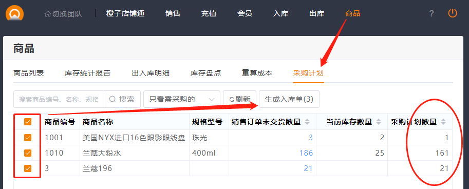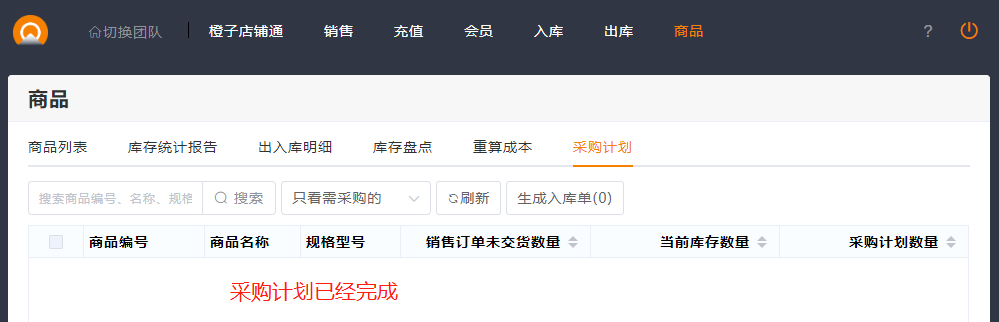店铺通里独有一个采购计划功能,在商品列表,可以查看采购计划表,其中采购计划的数量=订单未交货数量-当前库存数量。