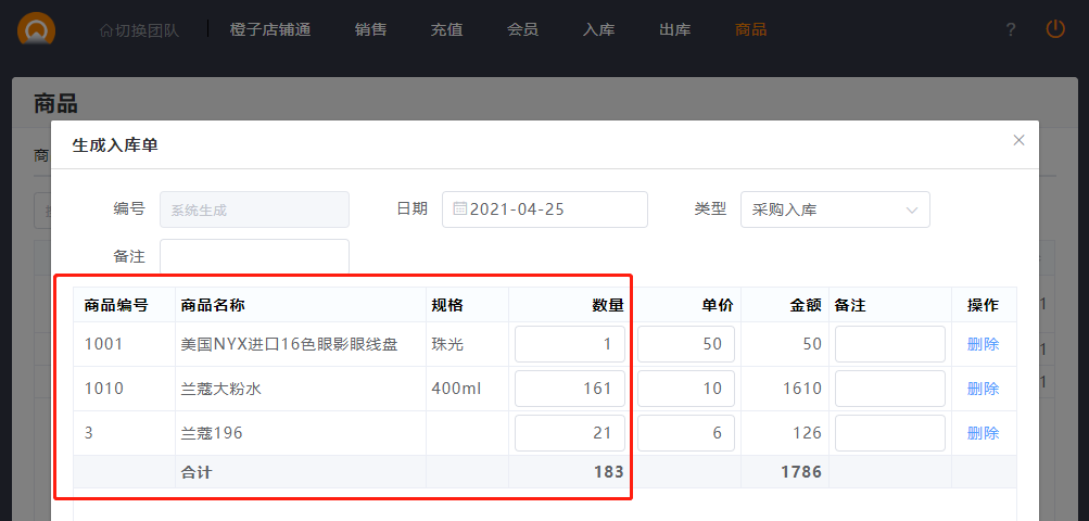 2.点击生成入库单,输入相关单价。