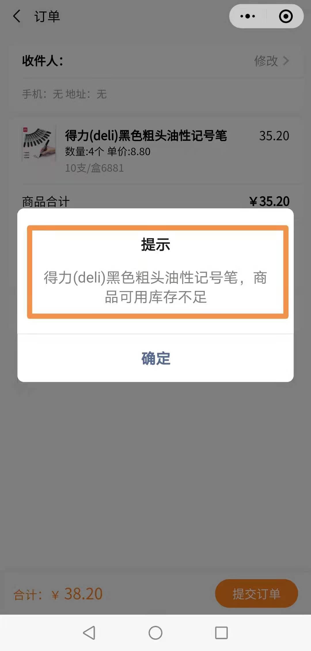 订单不能被提交。