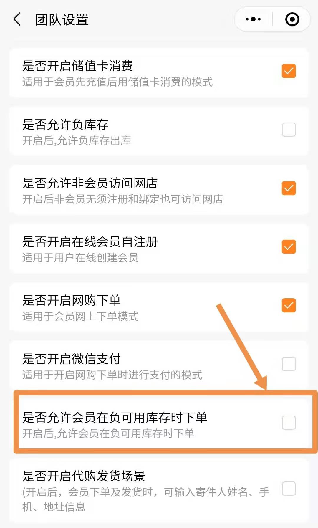 1.管理员在团队设置中,关闭允许会员在负可用库存时下单功能。