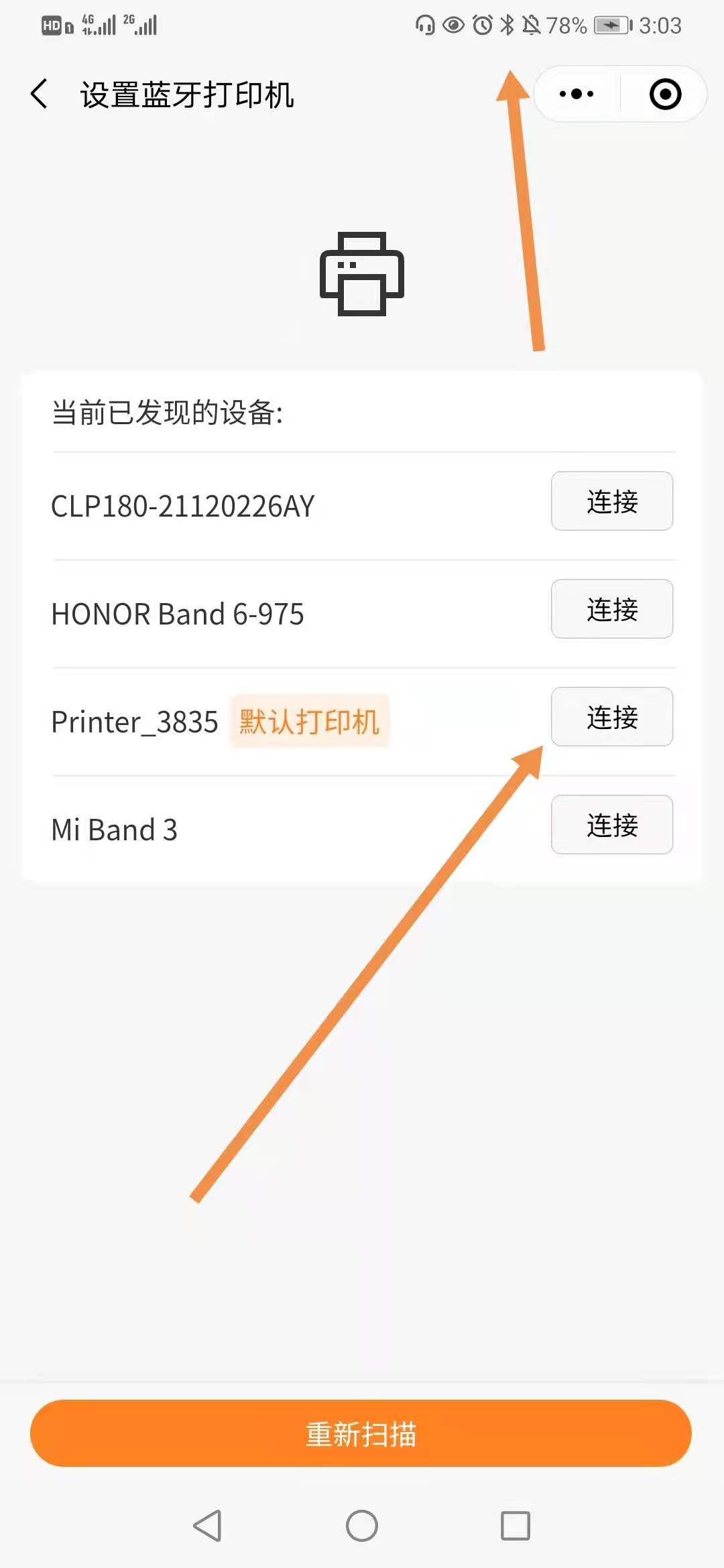 4.此时需要保证打印机是开启的,手机蓝牙也是开启的。