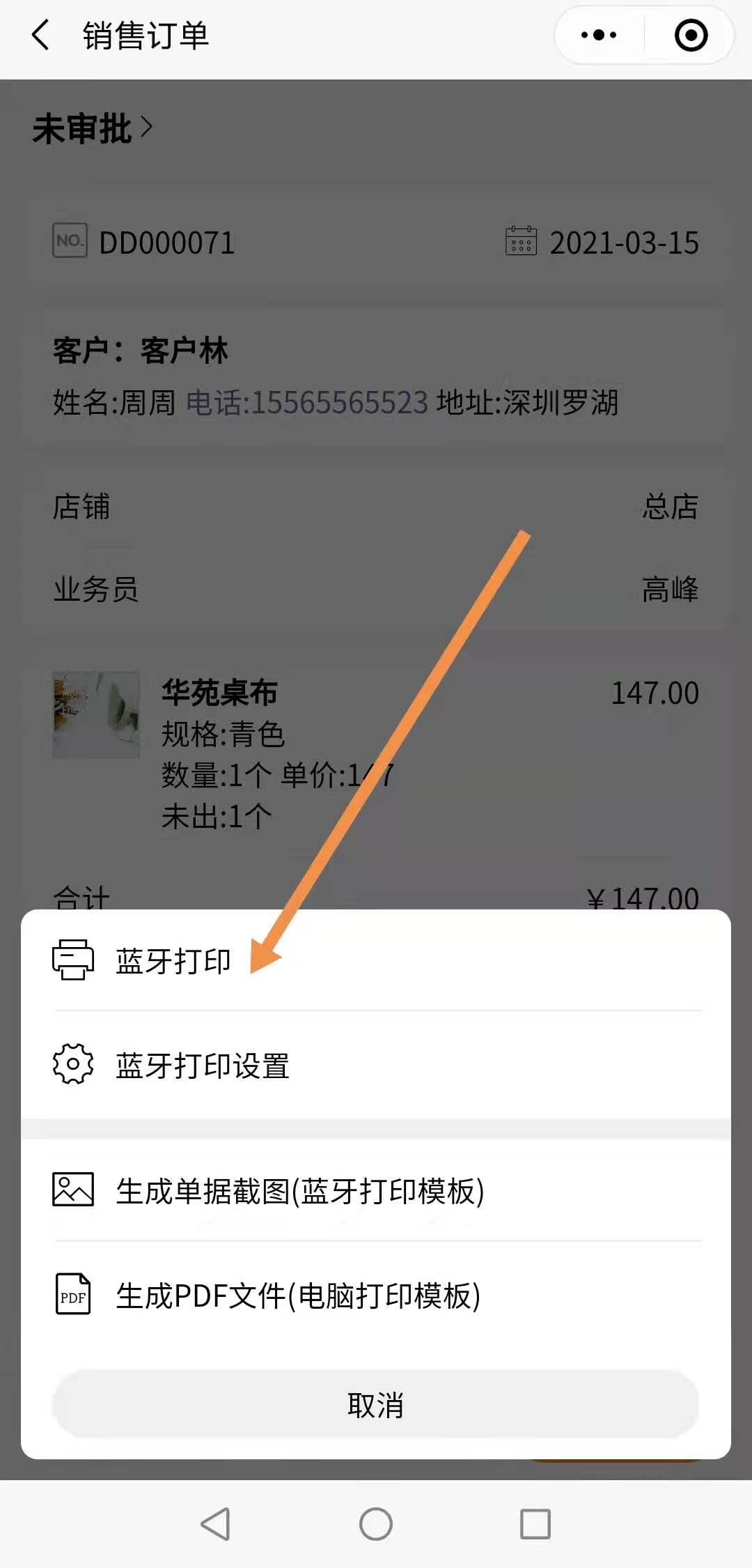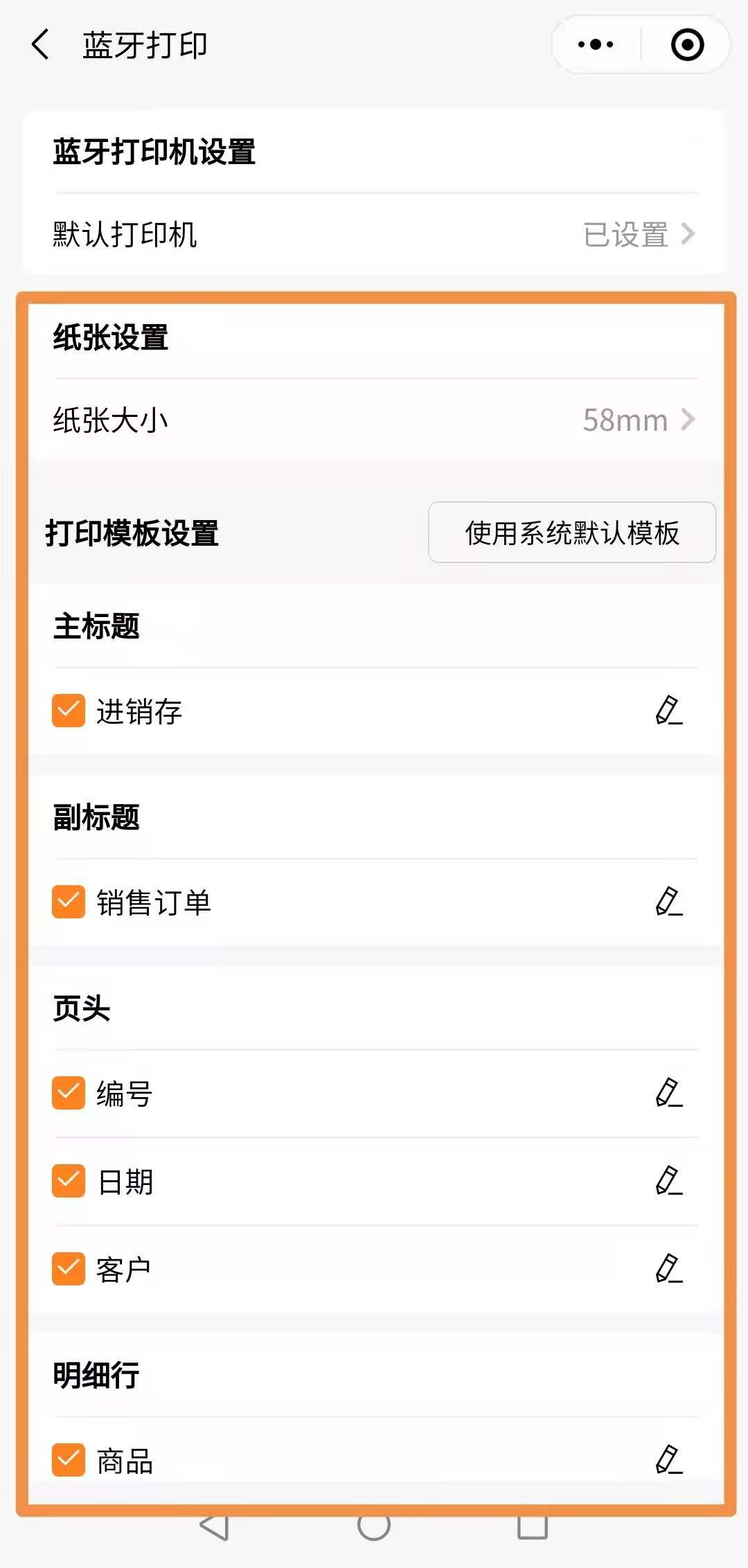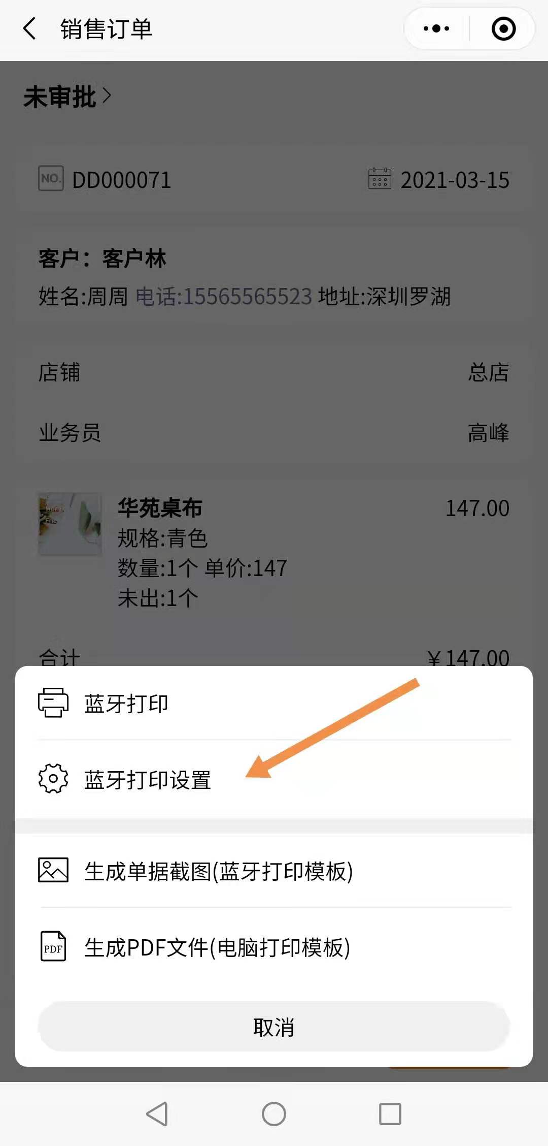 手机端进销存的单据,除了可以接云打印机,还可以设置蓝牙打印机,蓝牙打印单据。