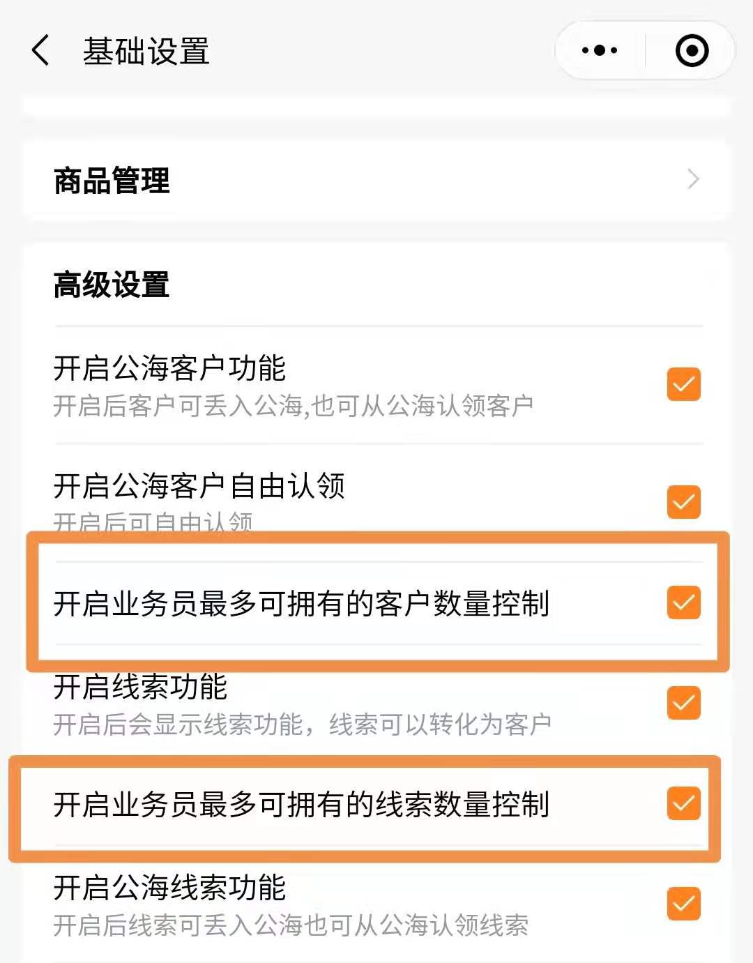 (注意:客户和线索均可设置控制数量)