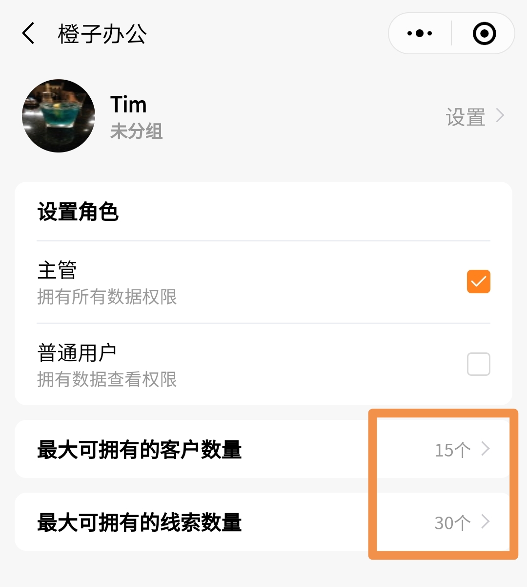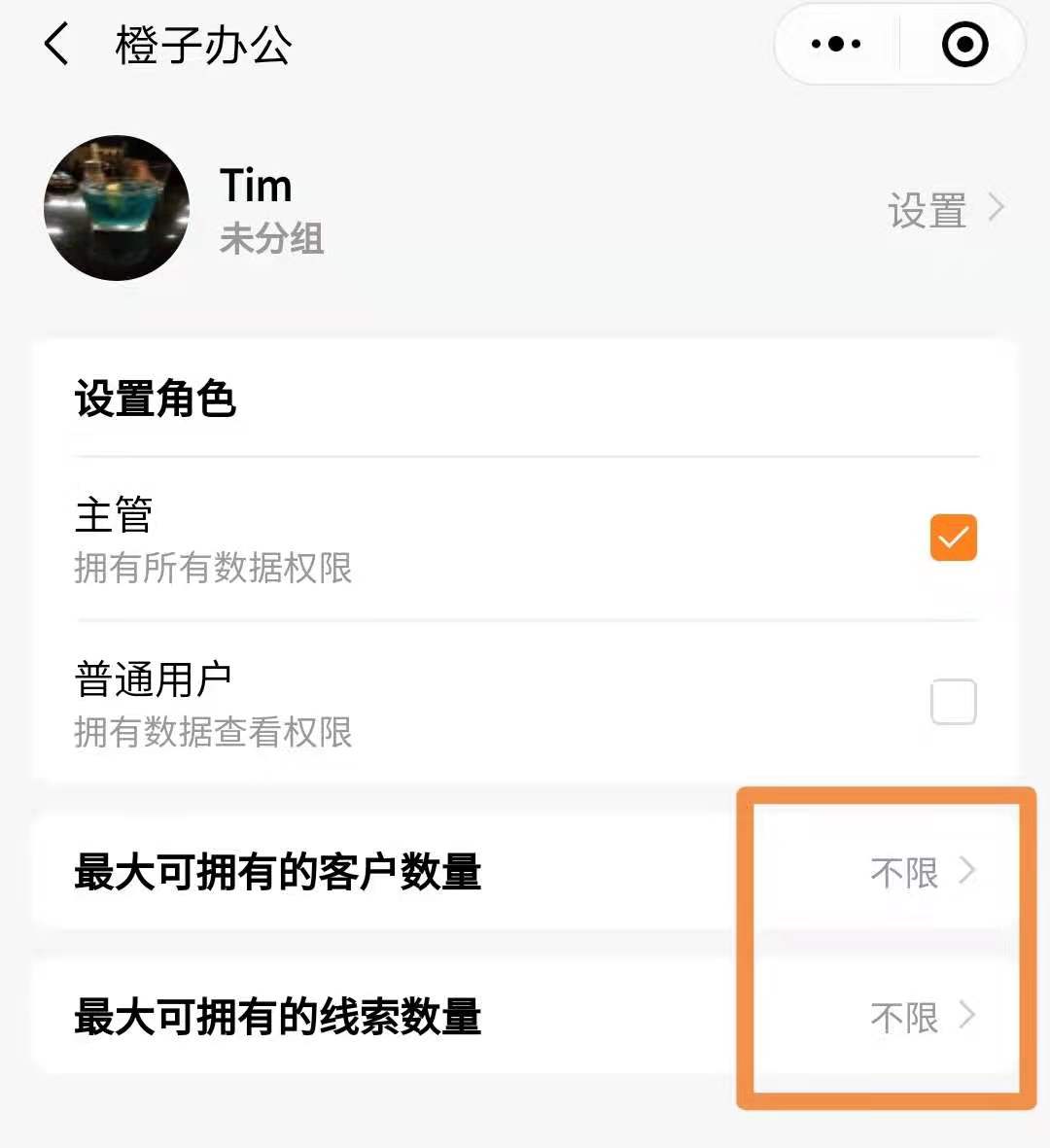 橙子客户管理增加设置业务员可拥有的客户数量功能,可以更好的让业务员利用好有限的客户资源。