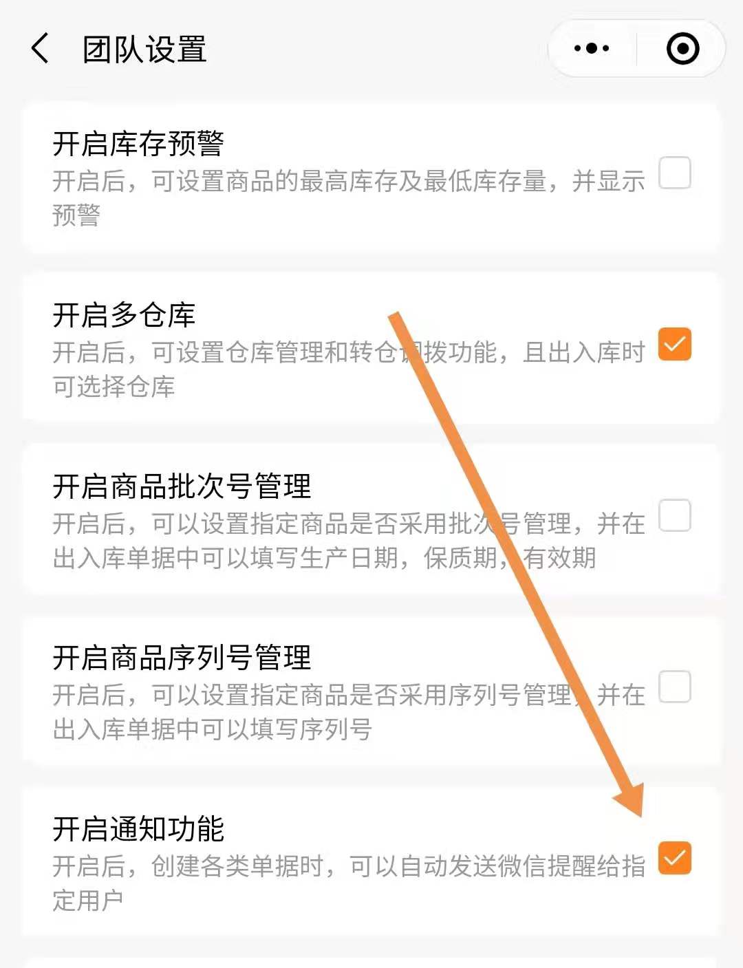 库存通使用中,创建各类单据时,有时需要第一时间通知相关人员 ,有新的申请单,或者有新的出入库单,此种情况,可以开启单据通知功能。