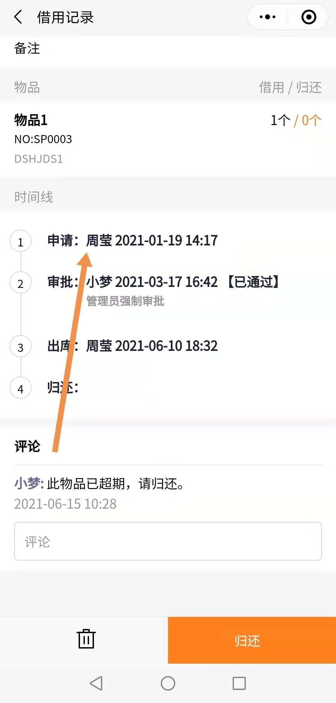 借出的物品,没有按期归还,可以在系统上直接提醒归还。