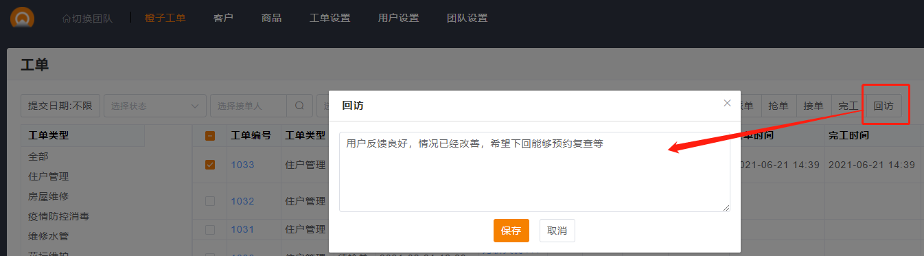 工单回访功能