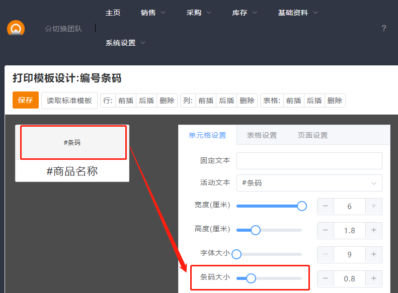 如果同一个标签纸,有的商品条码短,有的比较长,可以临时设置条码大小,解决打印问题。