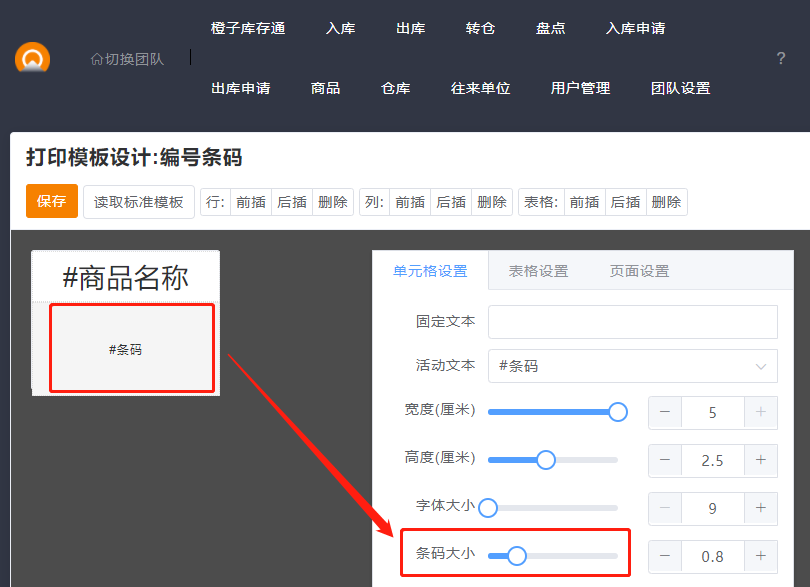 如果同一个标签纸,有的商品条码短,有的比较长,可以临时设置条码大小,解决打印问题。