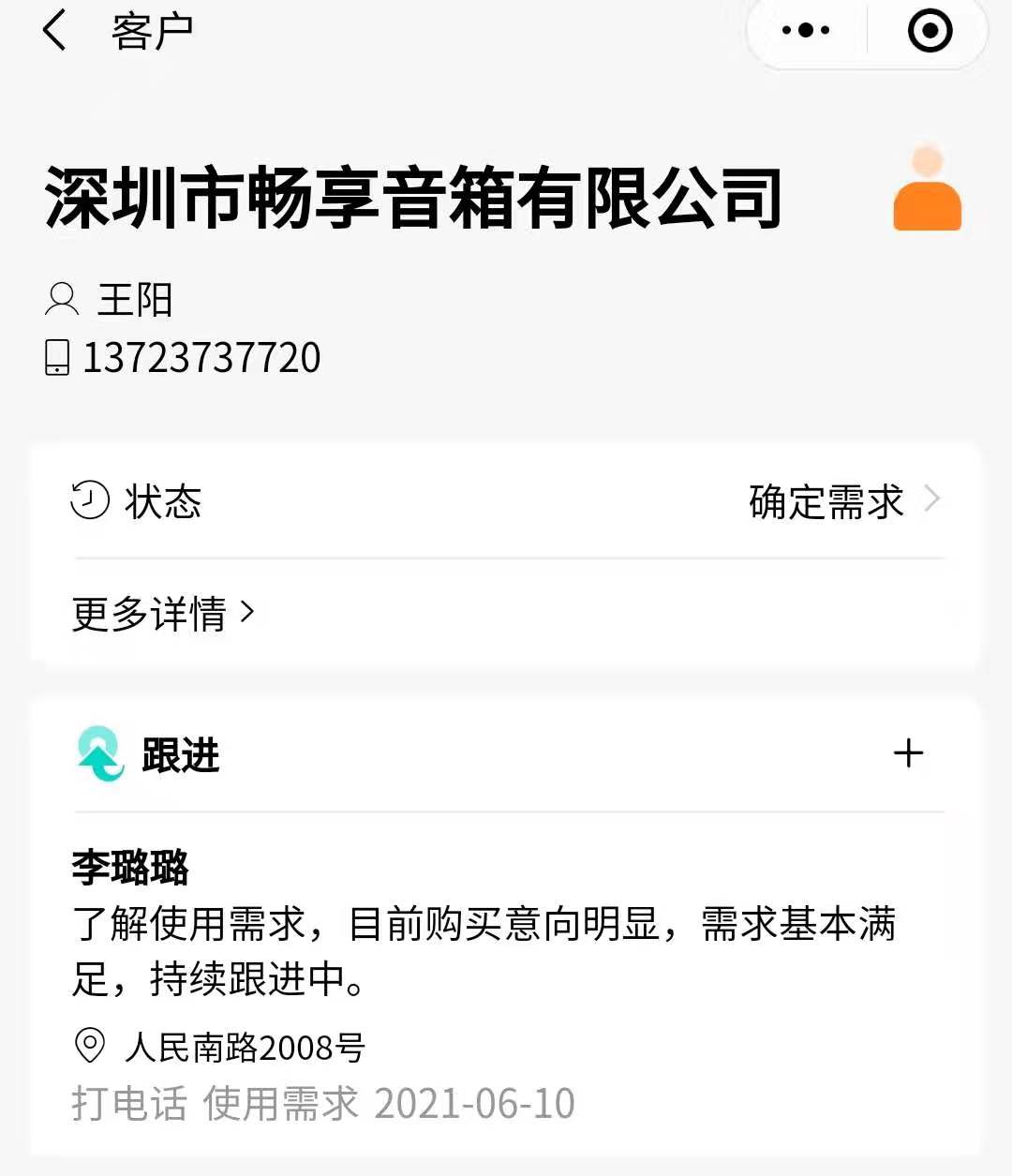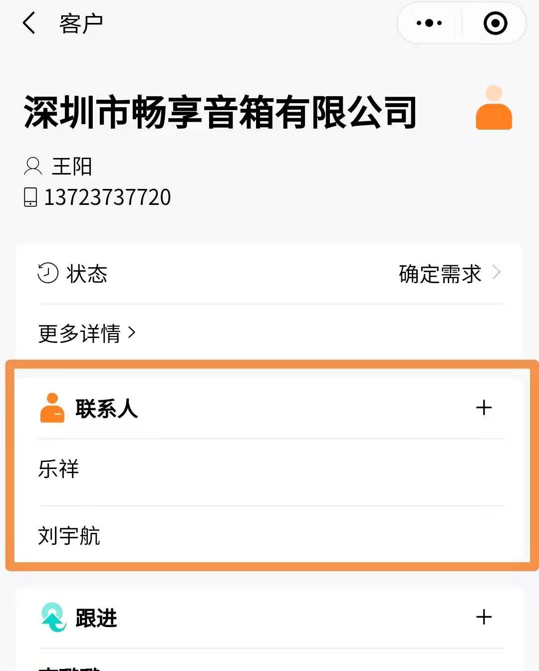 2.开启后,客户详情里会有联系人,还可以添加多个联系人。