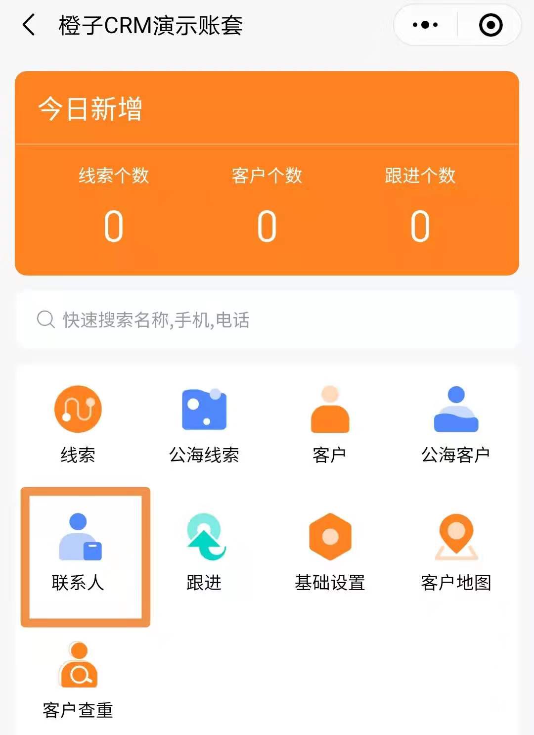 4.同时开启后,首页也会显示一个联系人列表,可以显示客户的所有联系人。(由于公海联系方式需隐藏,此处联系人列表不包含公海客户联系人)