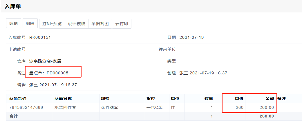 盘点表上的价格,可以核算出盘点的盈亏金额,默认为商品资料里的出库单价,但是也可以编辑修改。