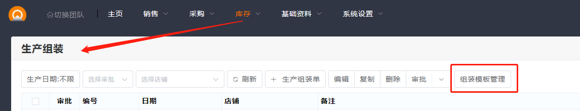 1.库存-生产组装-组装单模板。