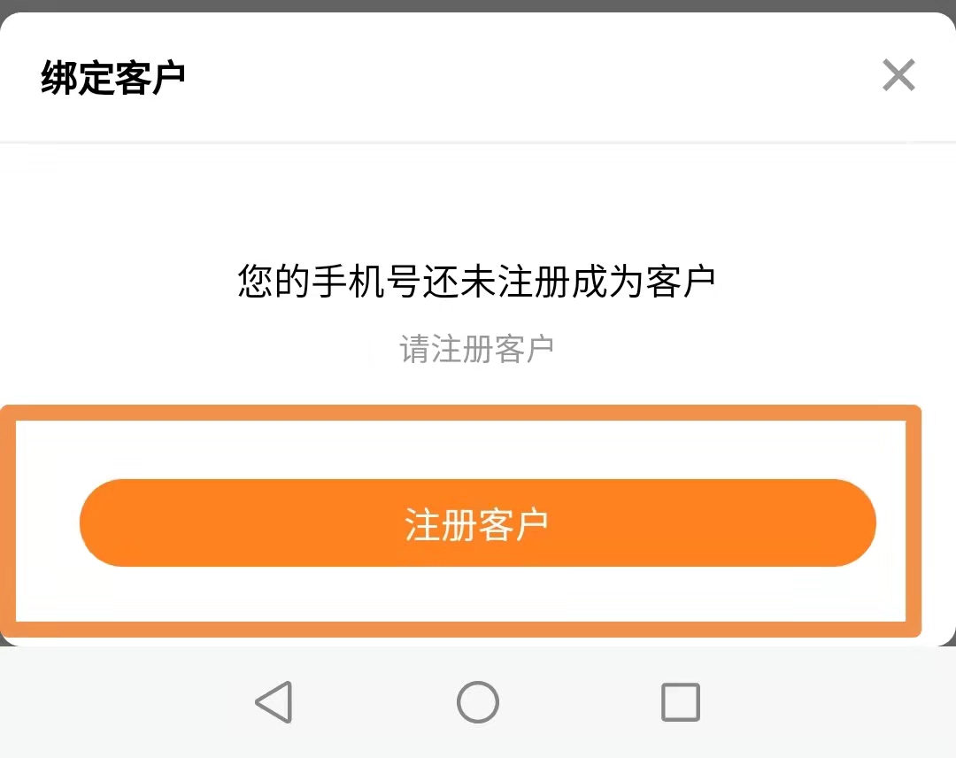 3.如果开启自注册功能,会提示不在客户列表中,但是可以直接点击注册客户。