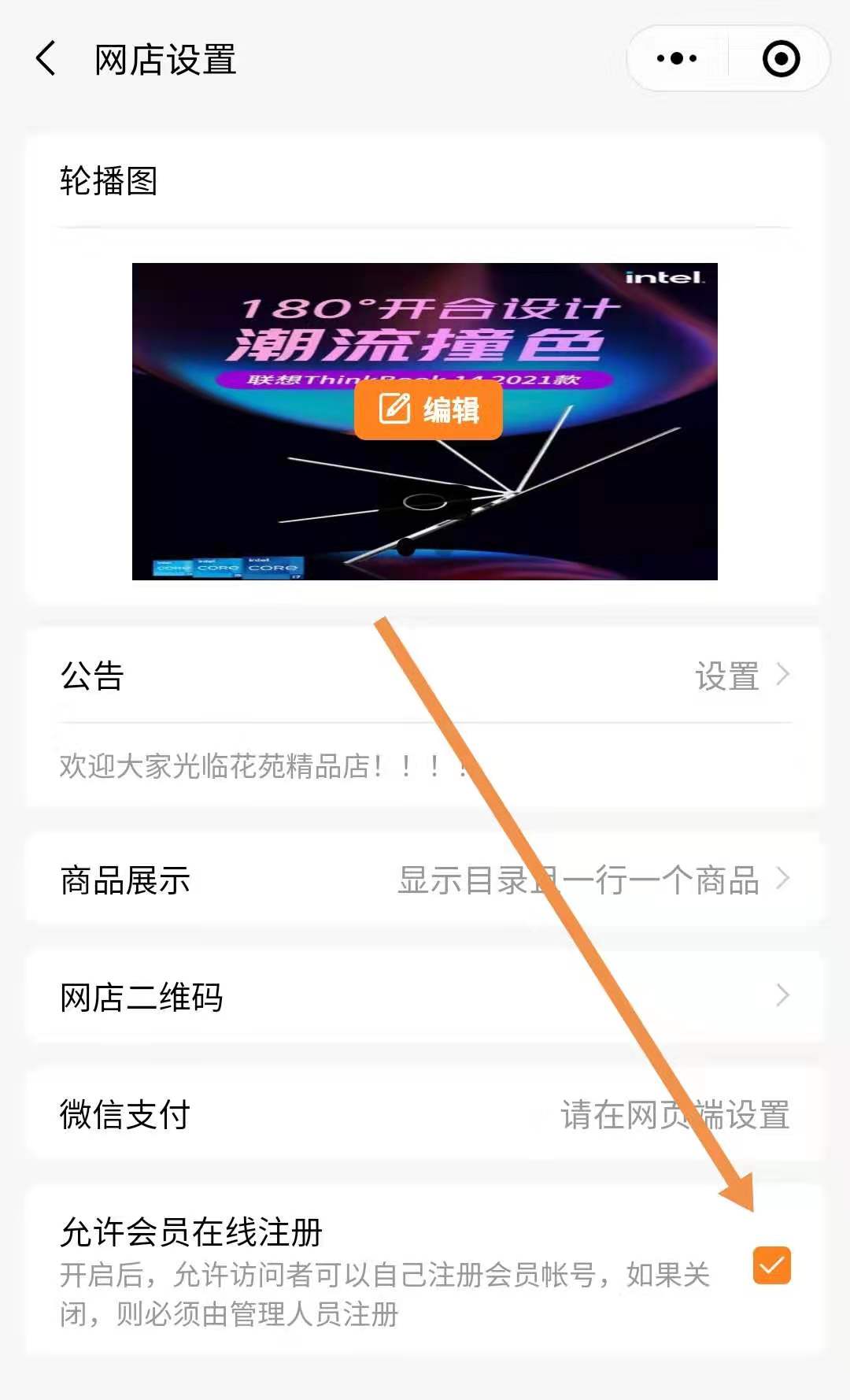 2.在团队设置中开启在线会员自注册功能,请客户会员进入店铺,自助注册成为客户。