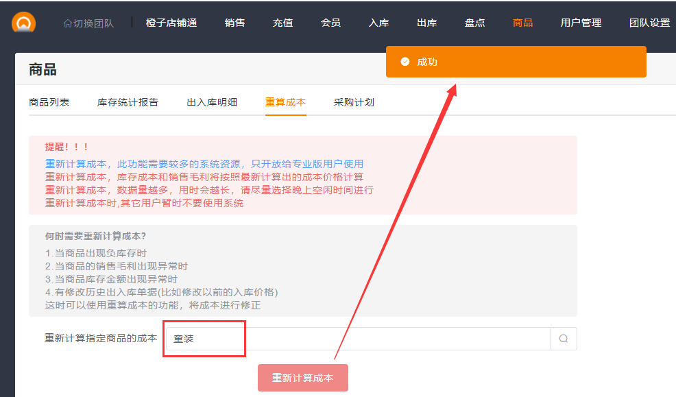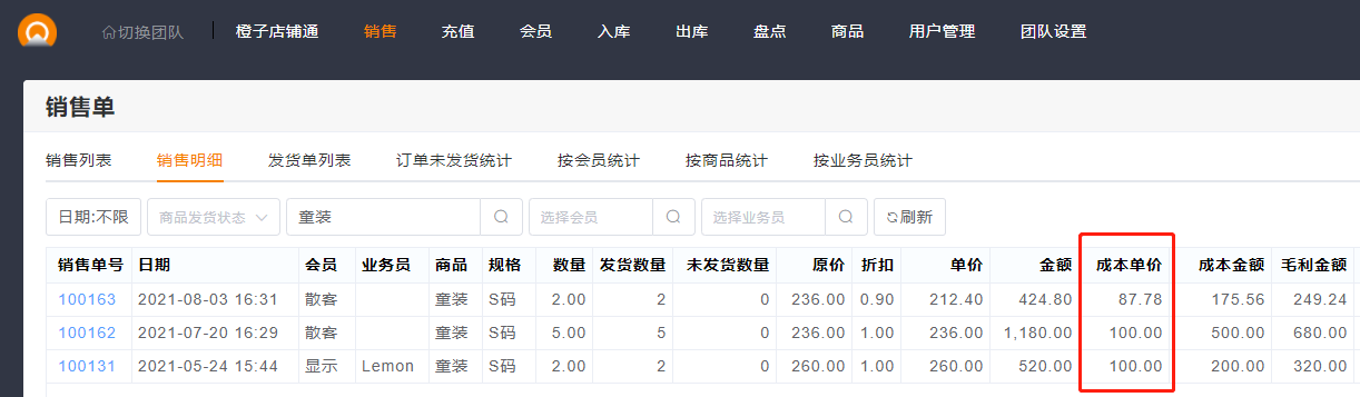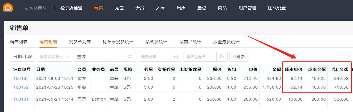 店铺通的销售明细可以实时核算相关单据毛利,这里会涉及到实时的成本单价,如果有过负出库情况,成本单价可能会不准确,此时纠正负出库情况后,做重算成本操作。