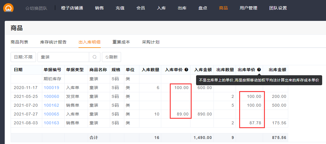 5.再刷新查看商品-出入库明细,即可发现成本金额已更新。