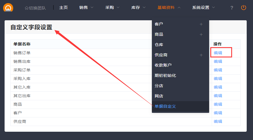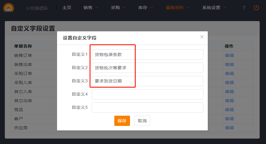 1.首先是设置变化的内容,可以在基础资料,自定义字段设置,添加自定义字段。