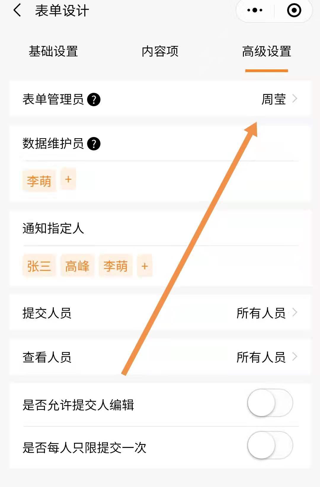 橙子表单的除了管理员和主管外,普通用户也可以管理表单设置。
