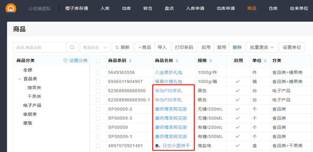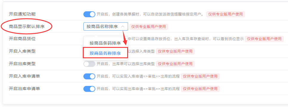 橙子库存通增加了设置商品默认排序功能,目前默认的是按商品条形码排序,有需要可修改为按商品名称排序。