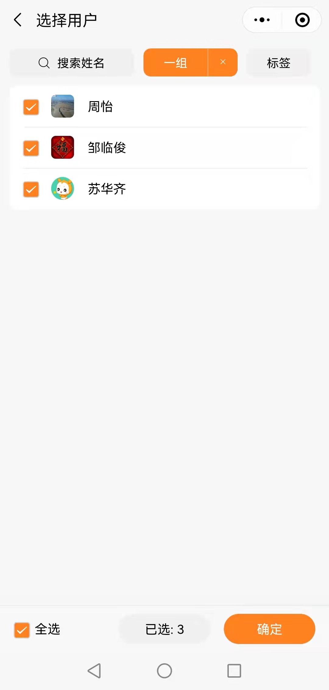 4.分组使用效果,在新增通知中,选择分组后,可以自动选择该标签下所有成员。