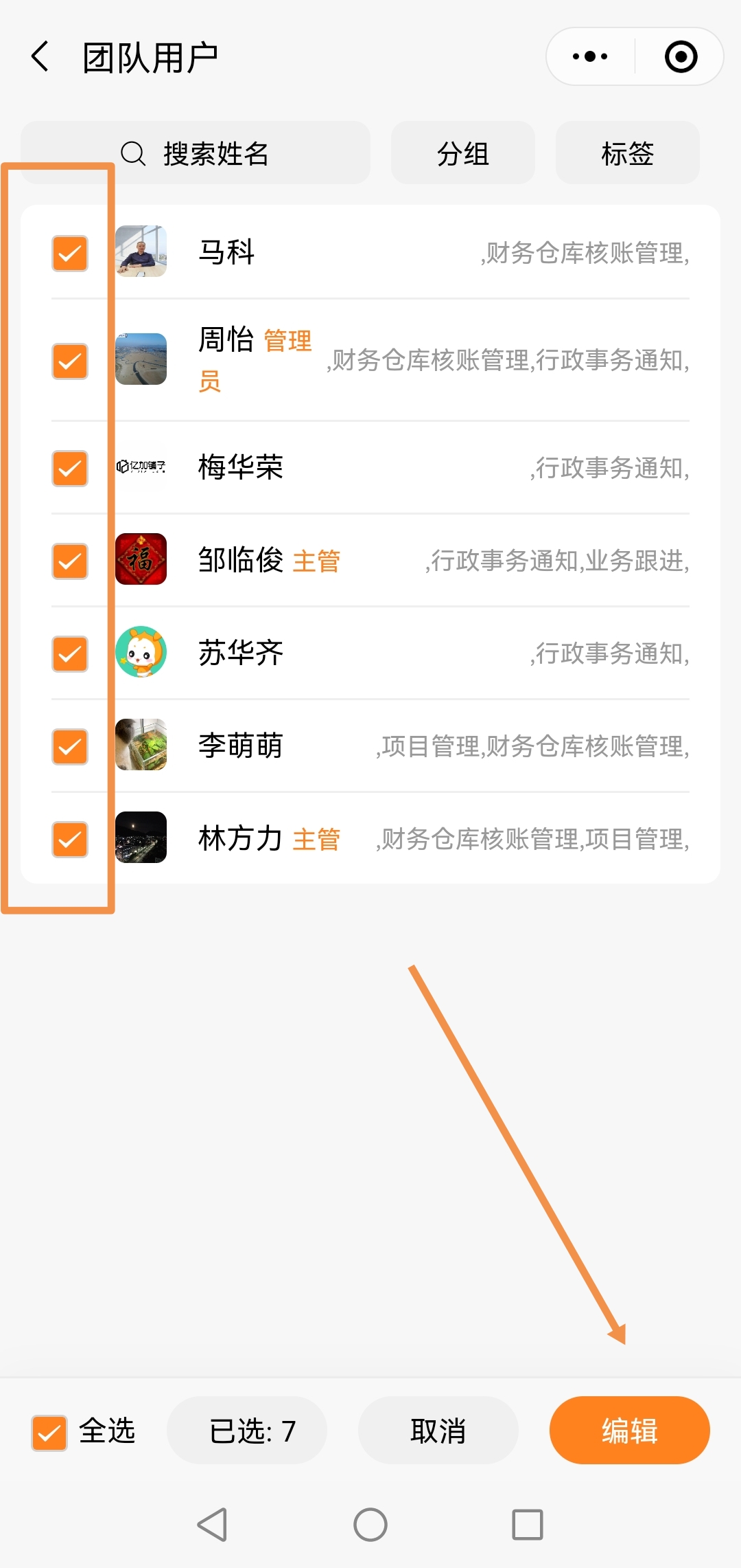 4.或者可以在用户列表,点击编辑标签,批量设置标签。