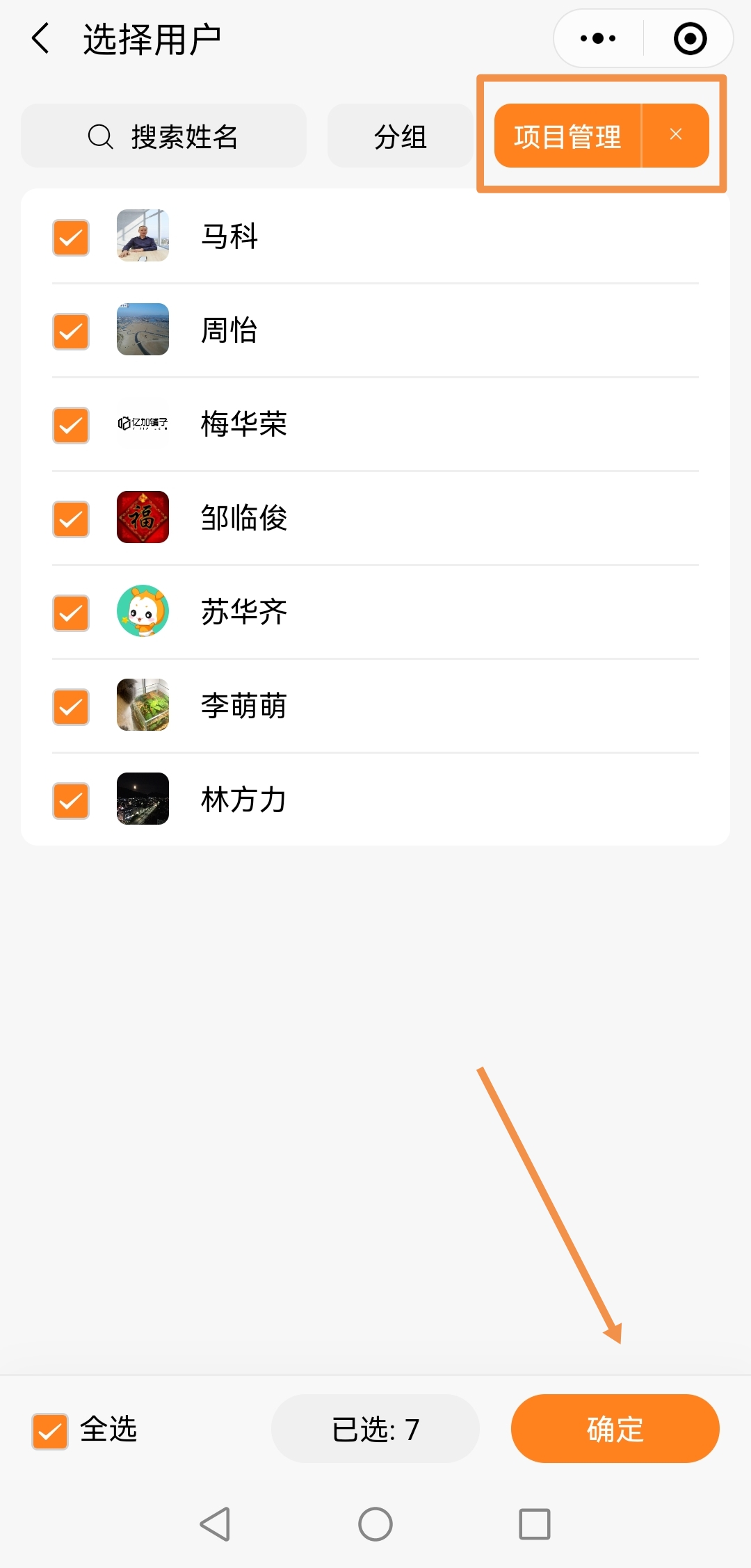 7.标签使用效果,在新增通知中,选择标签后,可以自动选择该标签下所有成员。