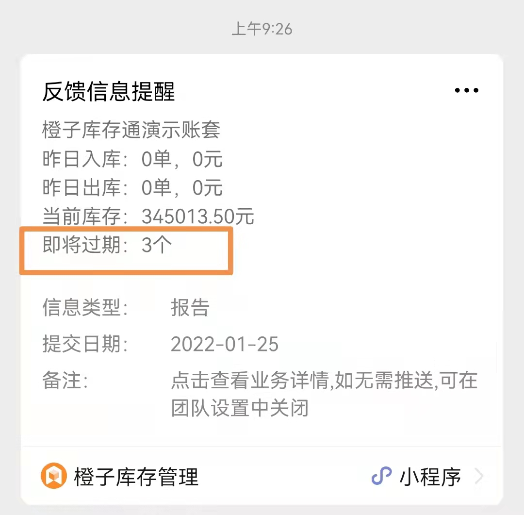 为了更好的管理到期商品,可以设置到期前多少天提醒,首页会提示有多少商品即将过期,同时每天也会推送给管理员多少种商品过期。