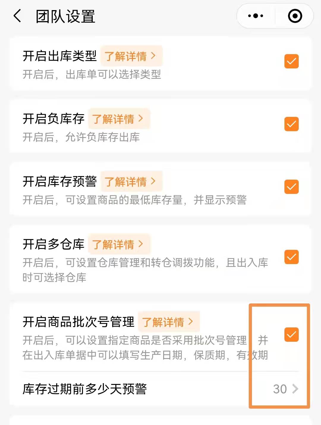 橙子库存通,开启批次号功能时,不仅可以输入批次,还可以输入生产日期,保质期,到期日等。
