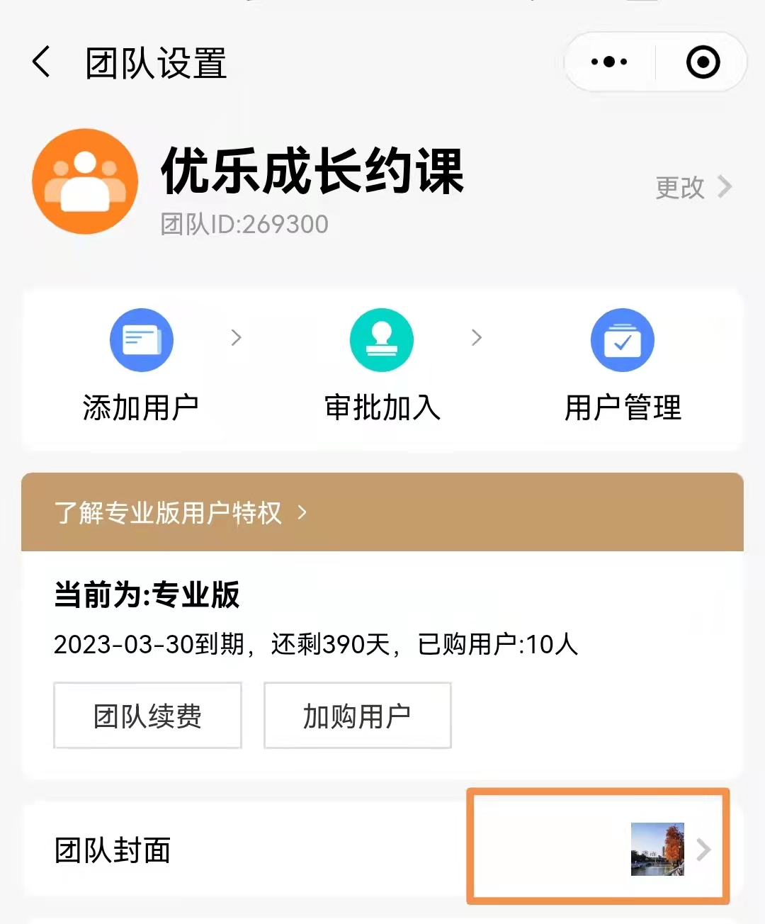 团队封面功能,可以设置一个图片为封面,在学员约课时,展现给学员。