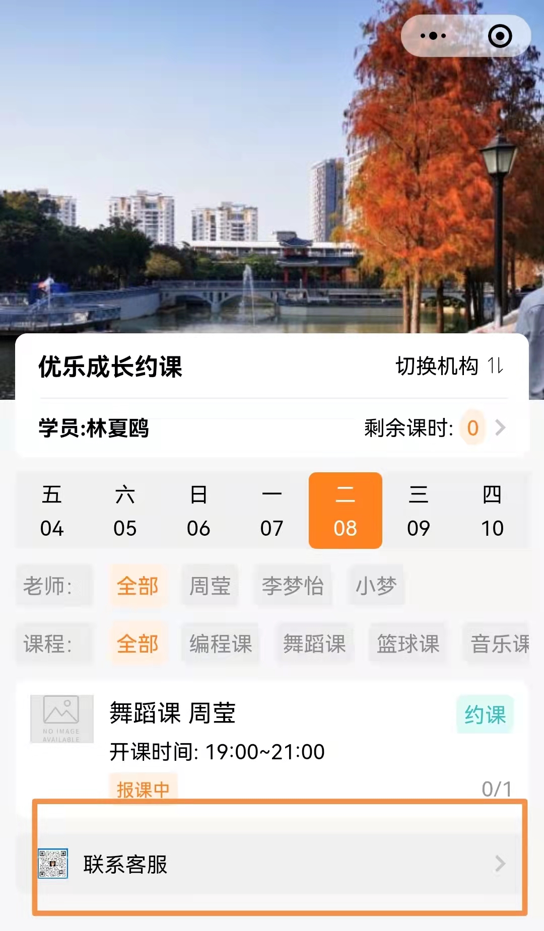 2.学员在约课时,最下方,可以直接点击客服微信,添加联系。