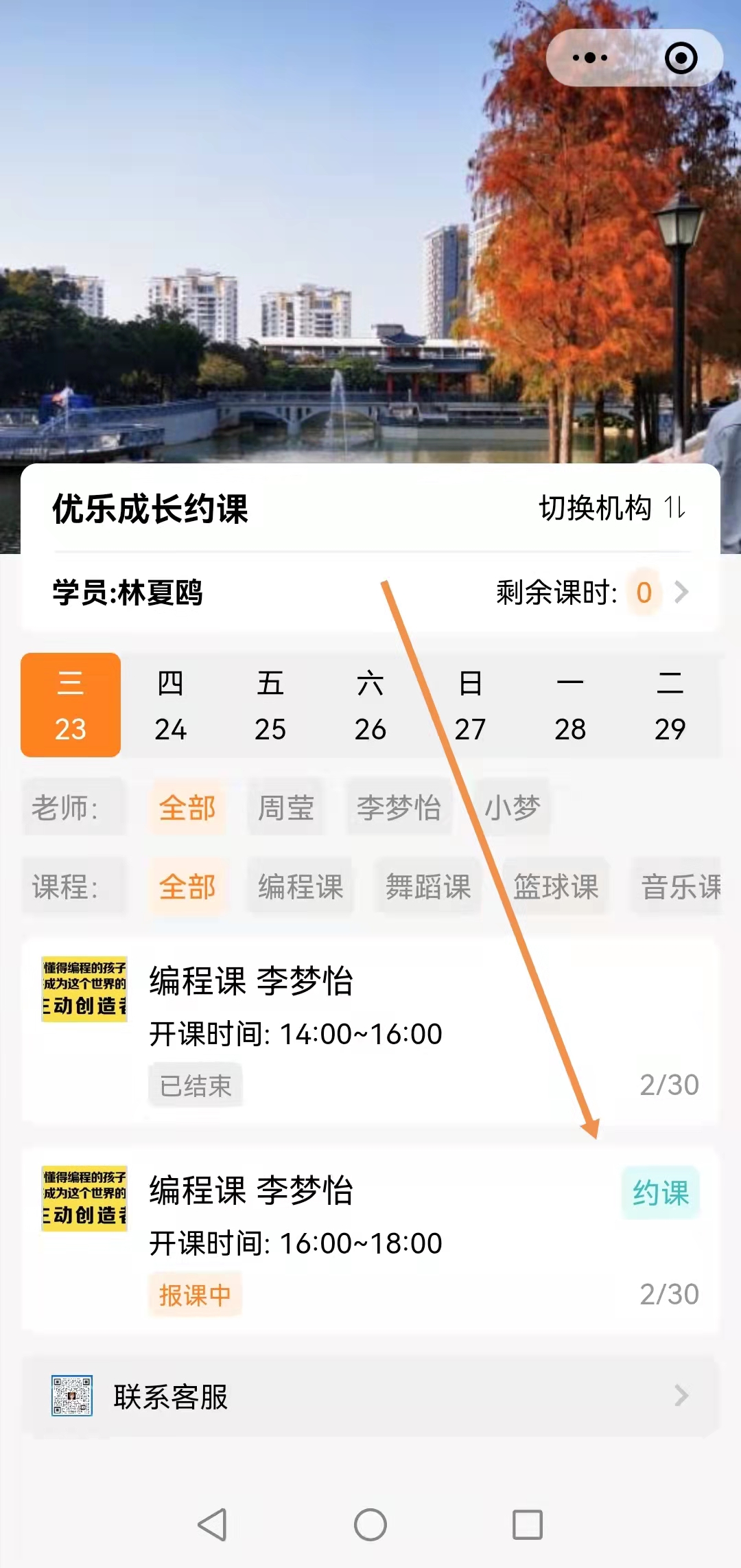 约课在两个地方都可以进行,一个是老师代为约课,另外是学员在手机端,登录约课通,自己约课。